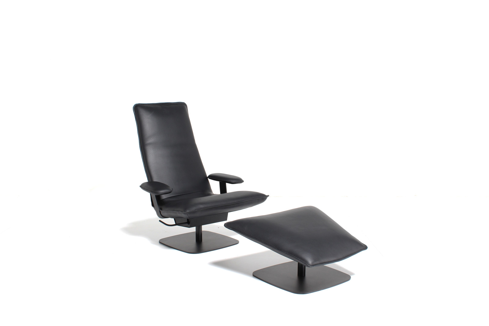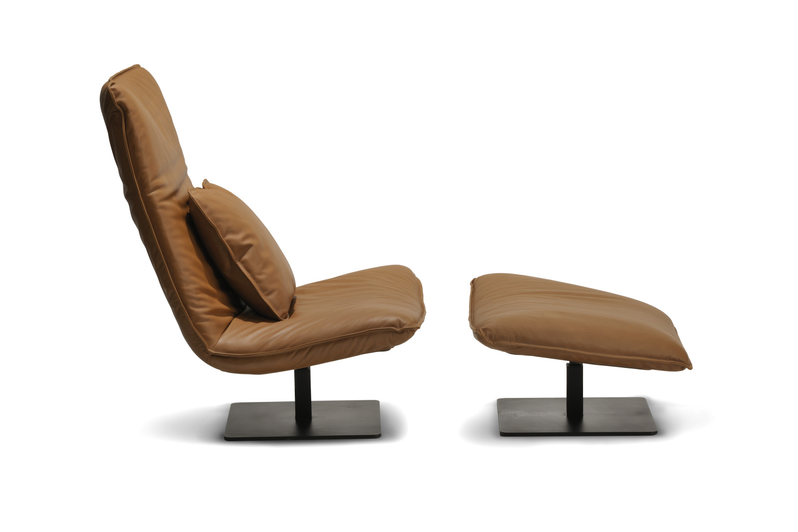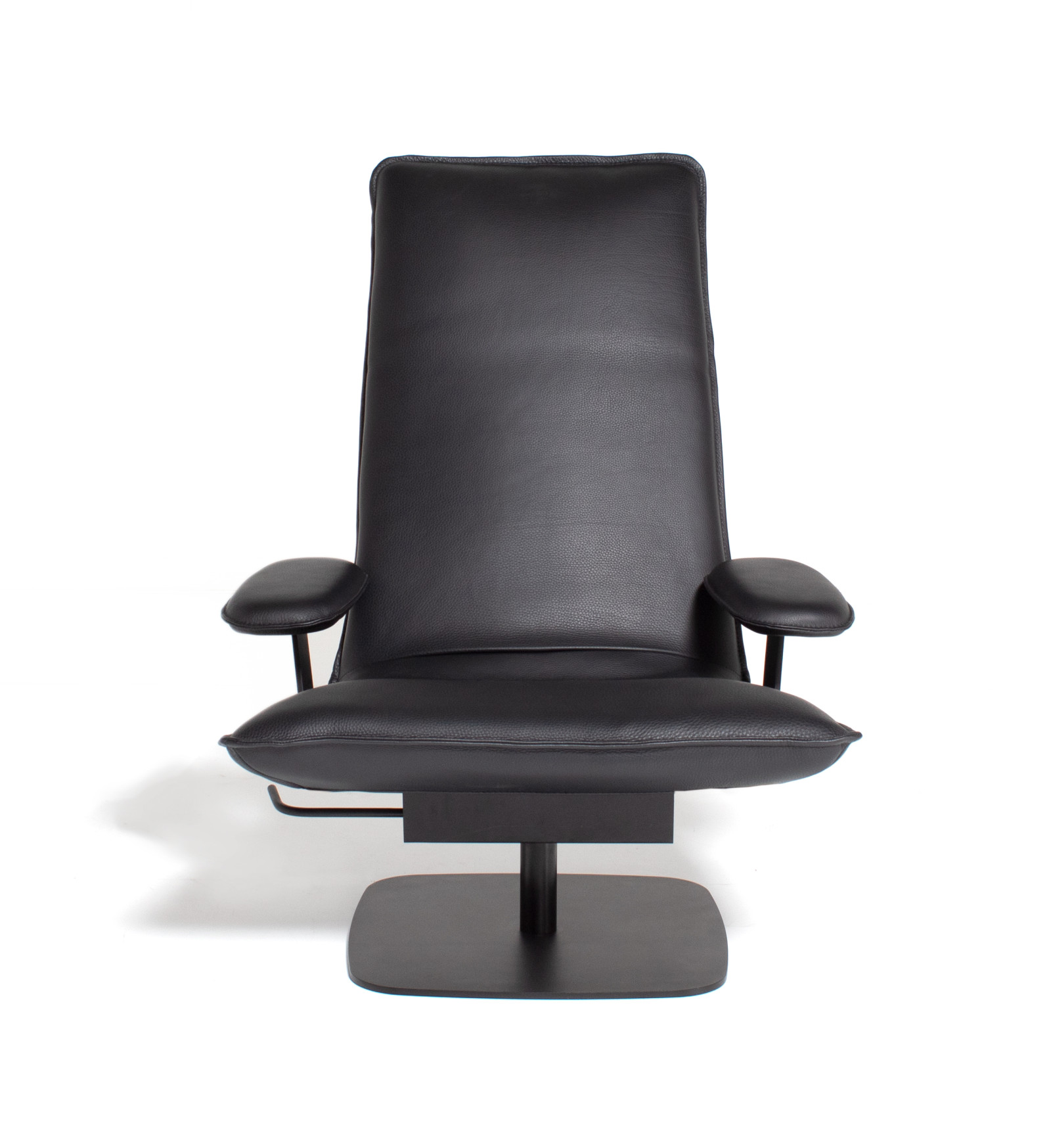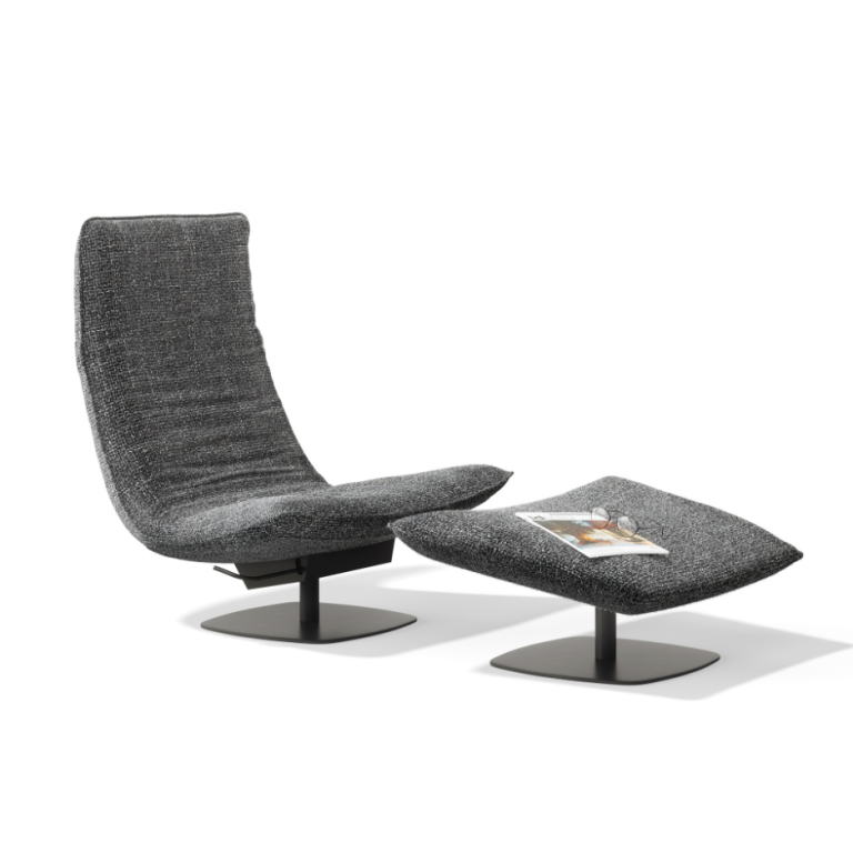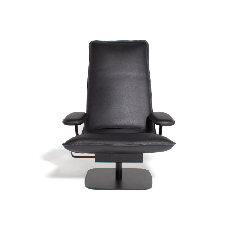 Le Sac is entirely on your terms. Choose between two heights (high or low) and two widths, with or without optional armrests. The chair rotates 360° around its axis, together with the matching ottoman. An integrated lever moves the backrest silently and smoothly into your desired position; the neckrest follows with a simple fold. This way you always find your ideal posture — sitting upright to read, half-reclined to watch TV, or fully stretched out to simply be. Le Sac guarantees hours of relaxation, without compromise.